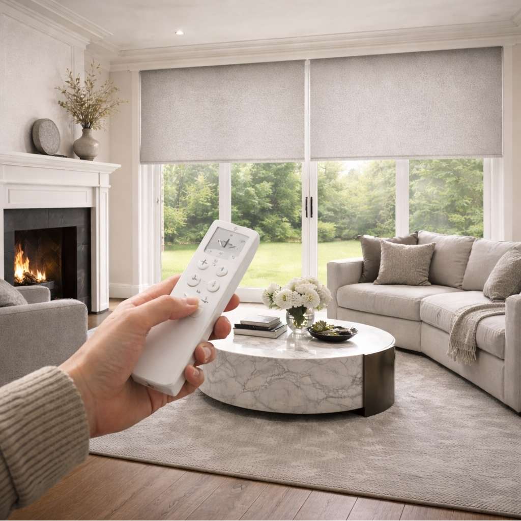 Choose our remote controlled Roller blind options for a range of practical fabrics in stunning colours to compliment any interior. Experience remote control Roller blinds in a stunning collection of contemporary plain and textured fabrics, fashionable print designs and light blocking blackout fabrics.